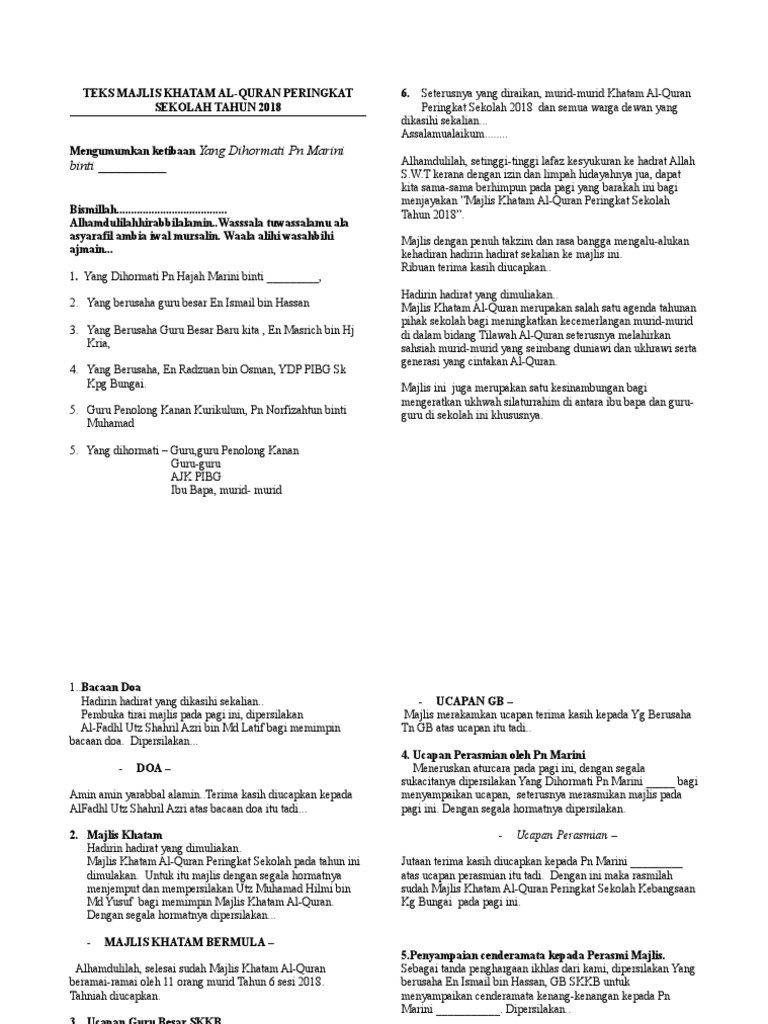 Teks Ucapan Majlis Penutup Khatam Al Quran Contoh Rr