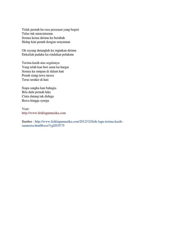 Iamneeta Terima Kasih Lyrics Lyrics My