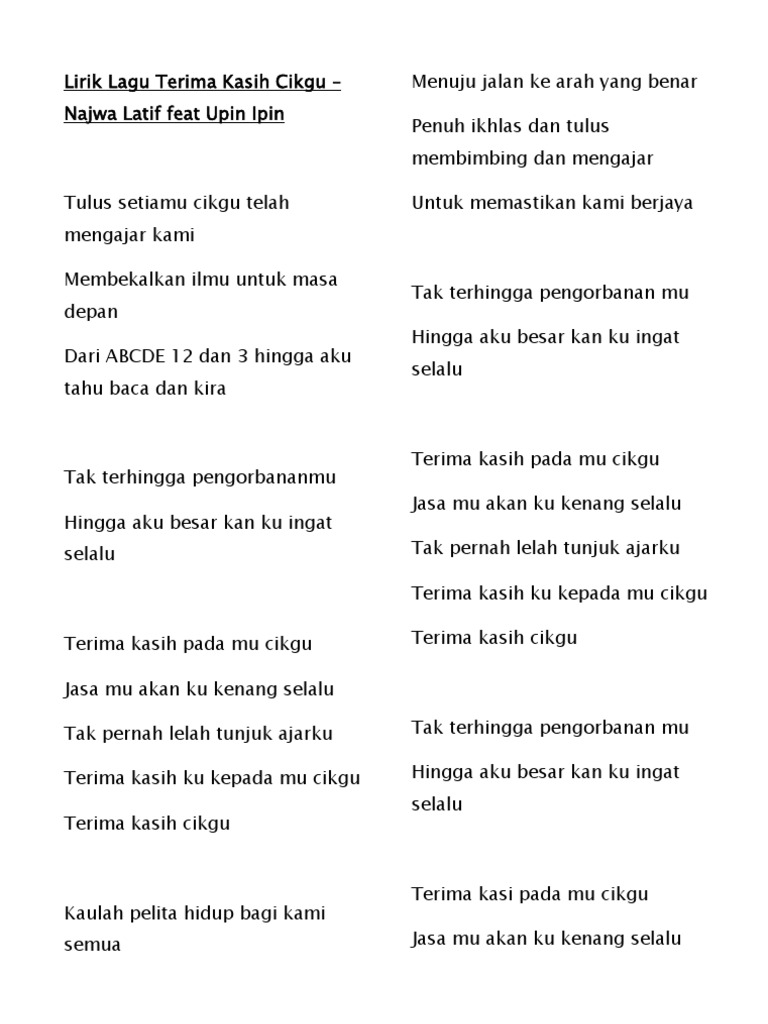 Lirik Terima Kasih Cikgu Upin Ipin Lirikdotbiz