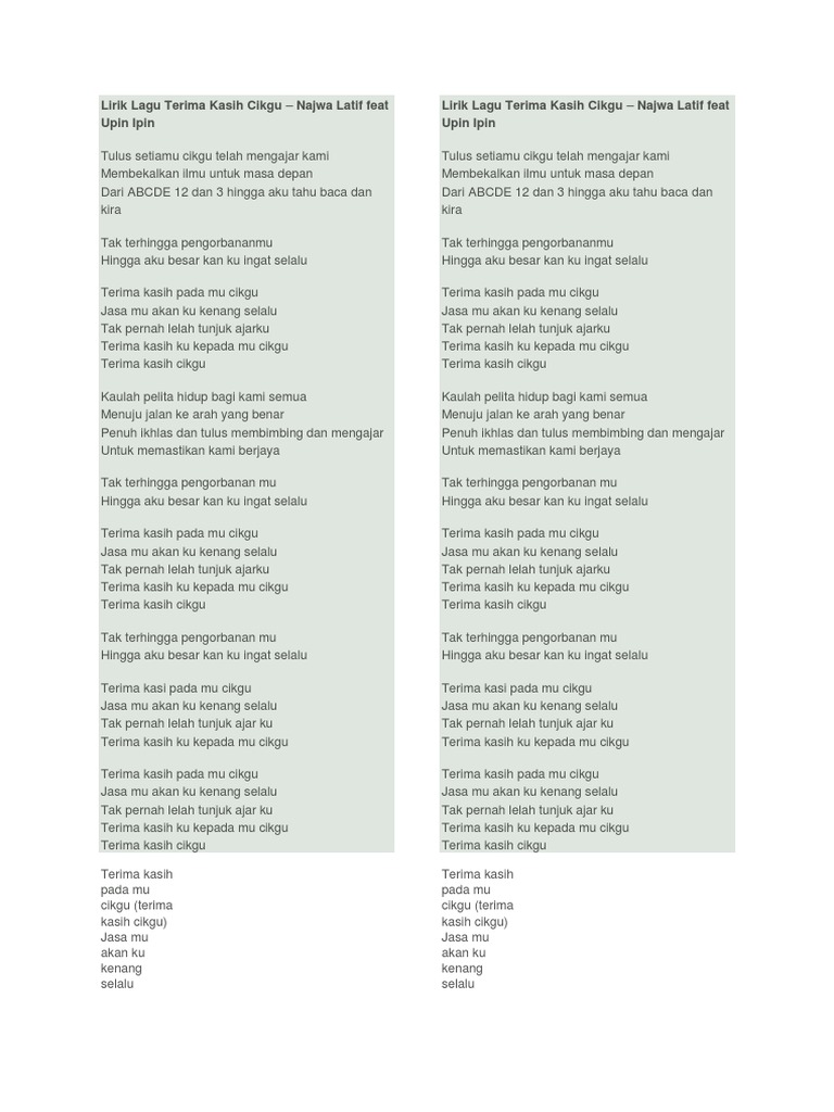 Lirik Lagu Terima Kasih Cikgu By Najwa Latif Feat Upin Ipin K546wq0x17l8