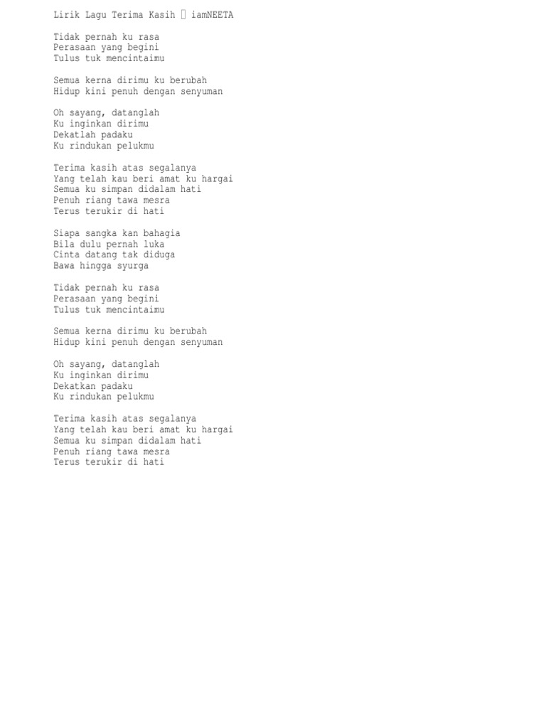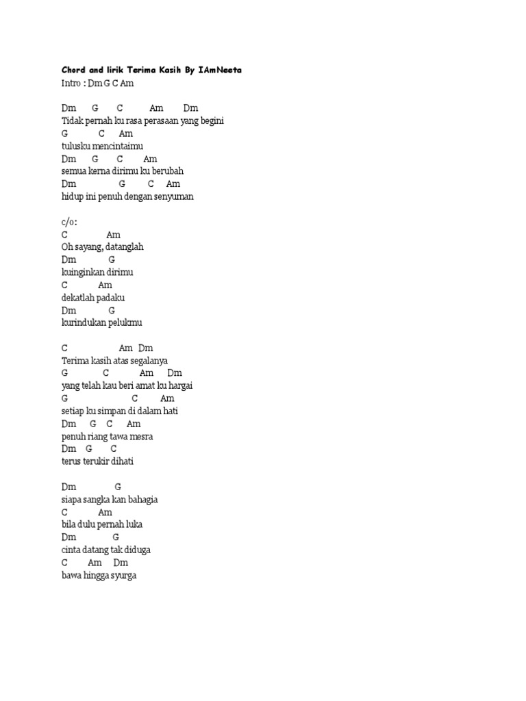 Doc Chord And Lirik Terima Kasih By Iam Neeta Fauzan Roslan Academia Edu