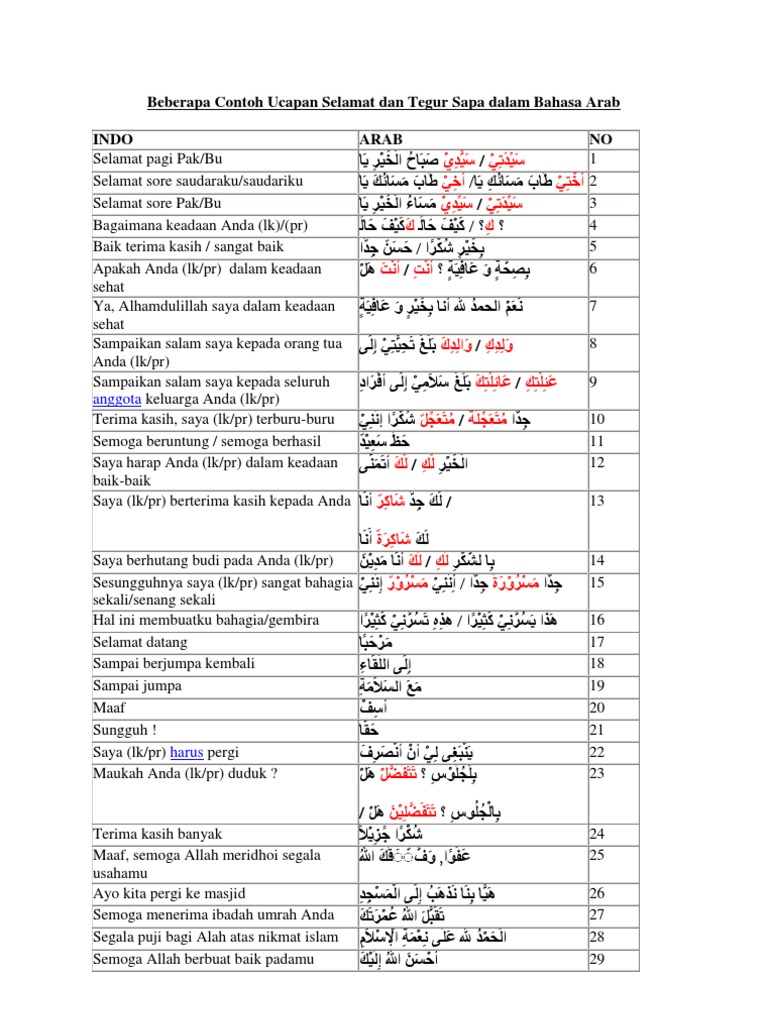 Beberapa Contoh Ucapan Selamat Dan Tegur Sapa Dalam Bahasa Arab