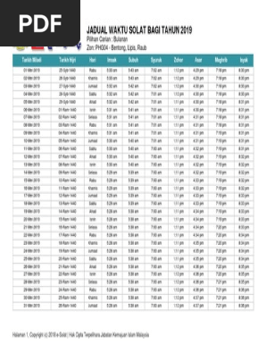 Jadual Waktu Solat Bagi Tahun 2019 Pilihan Carian Bulanan Zon Phg04 Bentong Lipis Raub