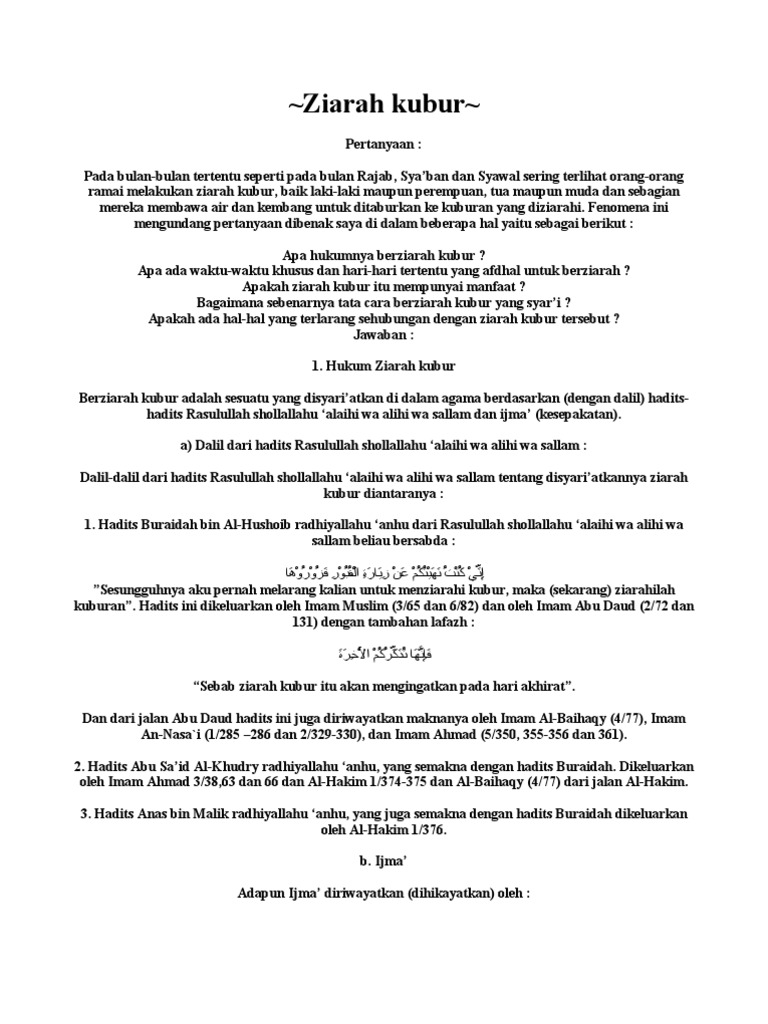 Disunatkan menziarah pada 1 hari khamis selepas solat asar2 sepanjang hari. Antara jakarta inews id ziarah kubur sangat dianjurkan bagi muslim karena banyak manfaat yang diperoleh. Sehingga melalui kesadaran tersebut kita akan tergerak untuk mempersiapkan amal baik sebagai bekal di kehidupan setelah kematian.
